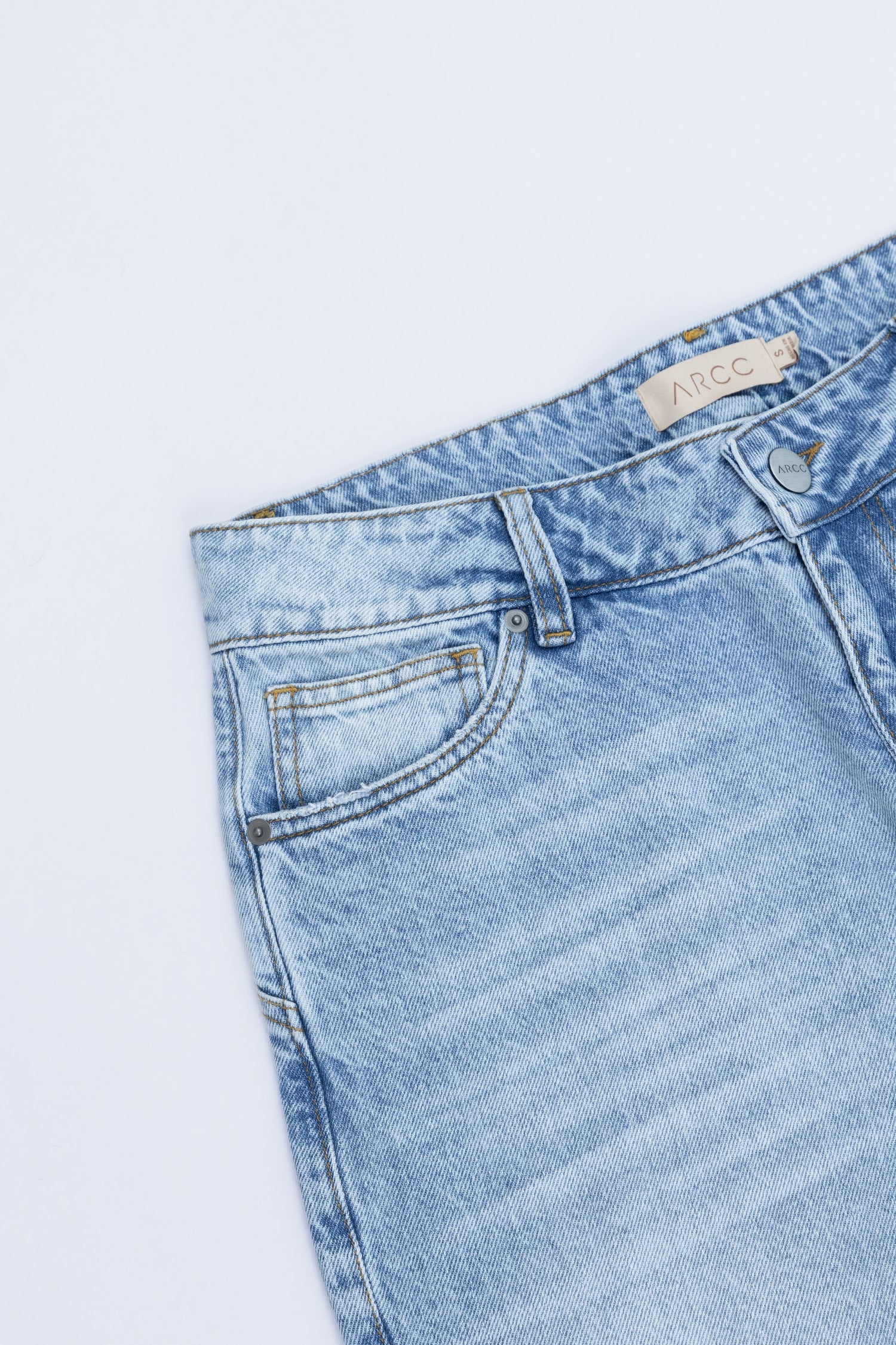 Blue jean baggy de silueta flare elaborado en denim de 12.5onz y con un lavado clásico en tonalidades de azul claro. Tiene los cortes en la bota girados y la garra en cuero contramarcado.