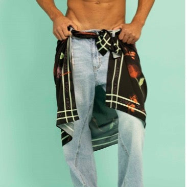 Pareo con ilustración de Flores sublimada. (ilustración original de la marca)